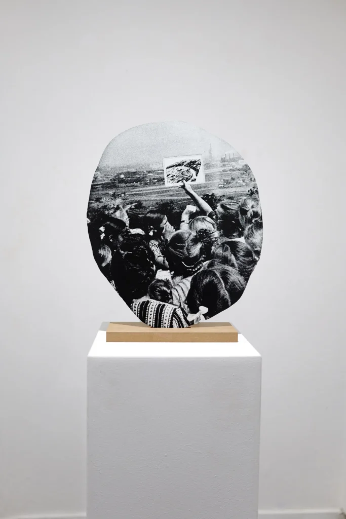 En su nueva exposición en wildpalms, Rachel Libeskind presenta dos obras principales que exploran cómo las imágenes moldean nuestra percepción de la historia y la identidad: What is a Flag? y In The Beginning and the End. En ambos trabajos, la artista continúa su investigación sobre la circulación de los símbolos y la construcción de la memoria colectiva a través del lenguaje del collage.
