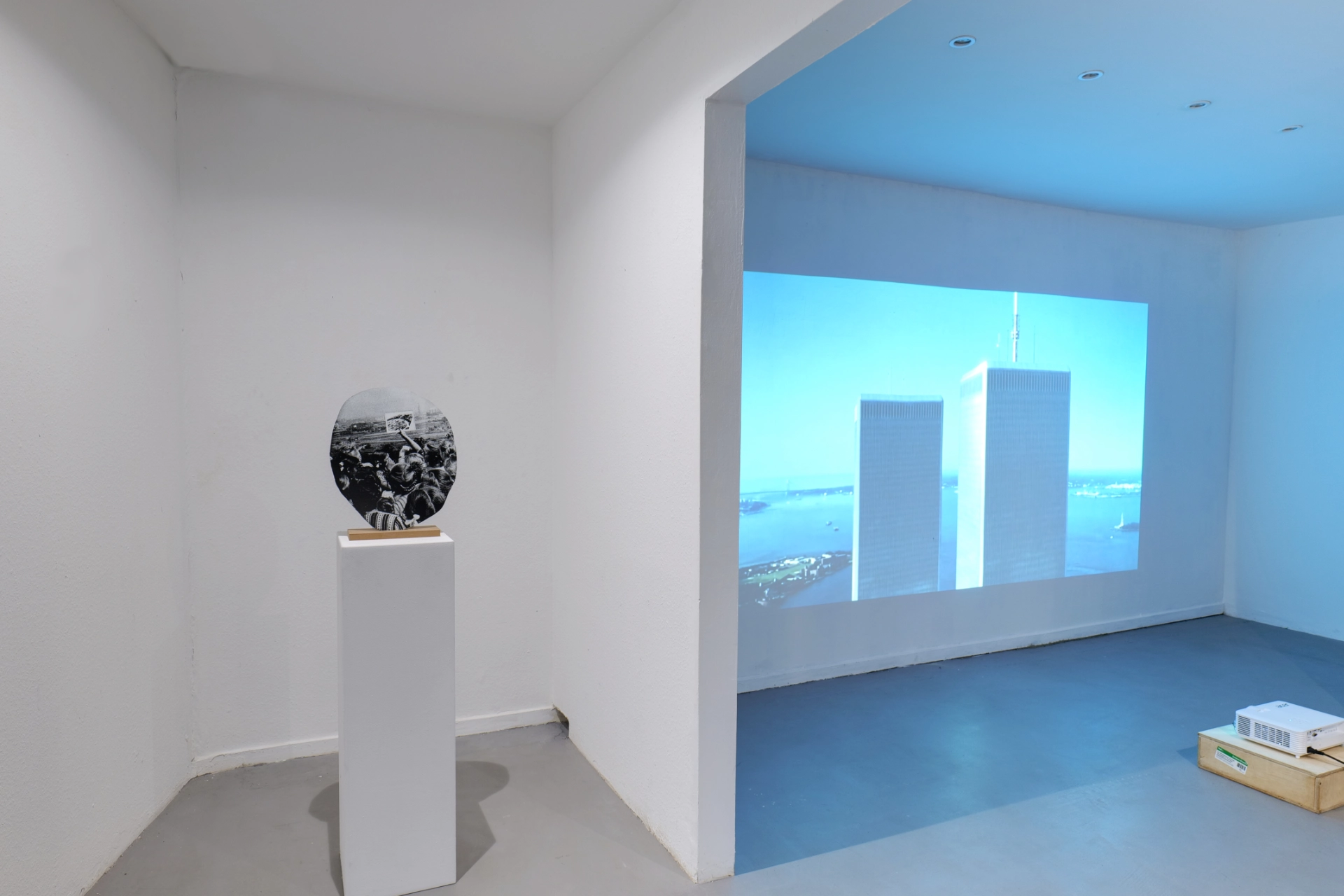 In In The Beginning and the End (2024), Libeskind constructs a rhythmic video collage from commercial images of the Twin Towers, spanning their opening in 1973 to their fall in 2001. Advertisements and promotional footage — once emblems of modern progress — reappear like visual alliterations, forming a hypnotic rhythm between memory and loss. Through this visual cadence, Libeskind connects the emotions of her own biography with the collective experience of a nation shifting from optimism and internationalism toward an age of war and fear. For the artist, who grew up in post-9/11 New York, the absence of the towers became a constant presence. By repeating their image, she transforms the architectural icon into a devotional motif, echoing how collective trauma turns symbols into relics.