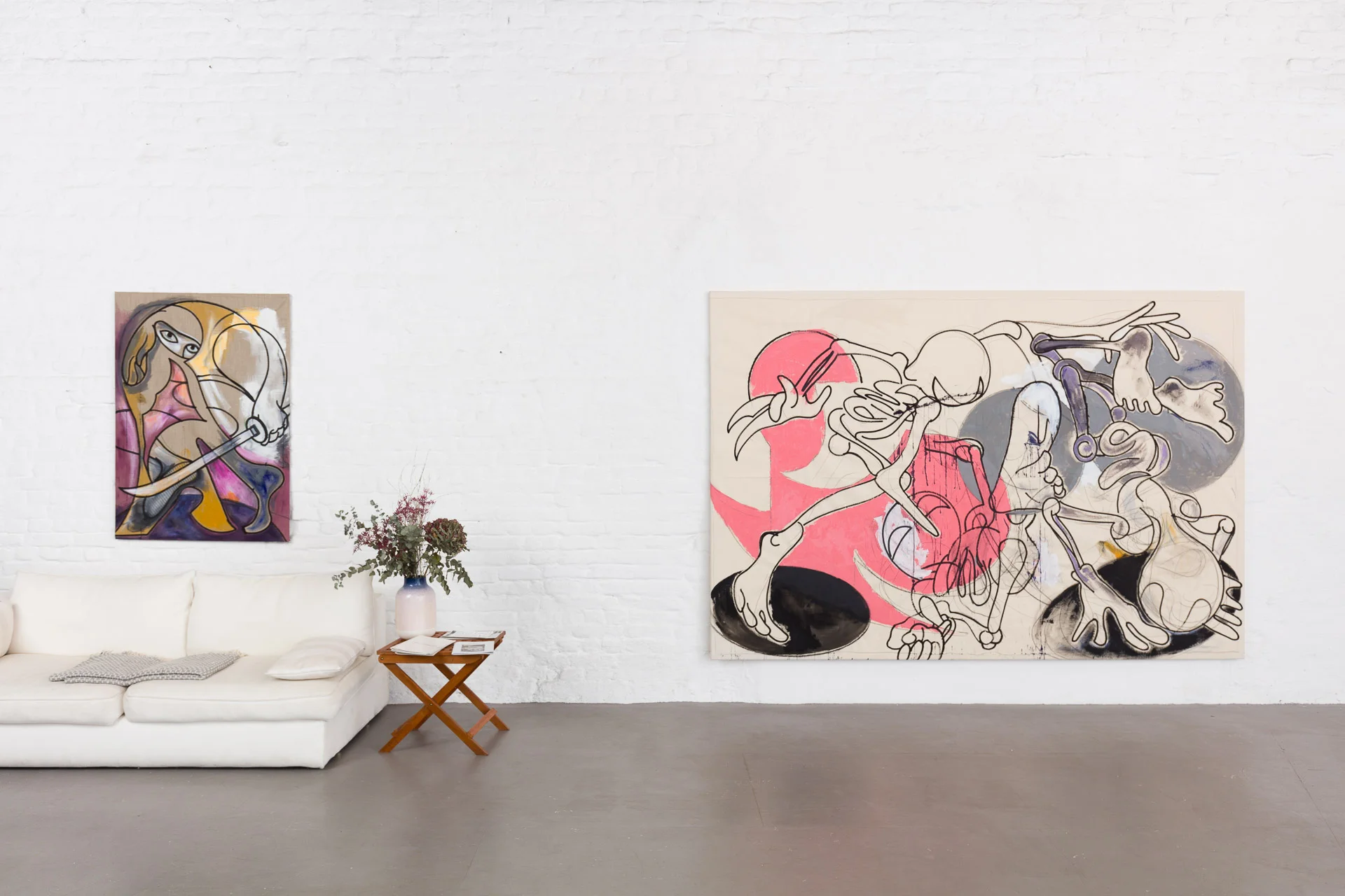 Over the past year and a half, we have closely followed Andreas Steinbrecher artistic development, observing the evolution of his creative strategies. Central to his practice is the constant reflection on the relationship between the artist’s hand and the support, a fundamental aspect of his work. This exploration of the line—a motif deeply rooted in the history of painting—continually re-emerges in Andreas’ work, driving the development of his pictorial language.