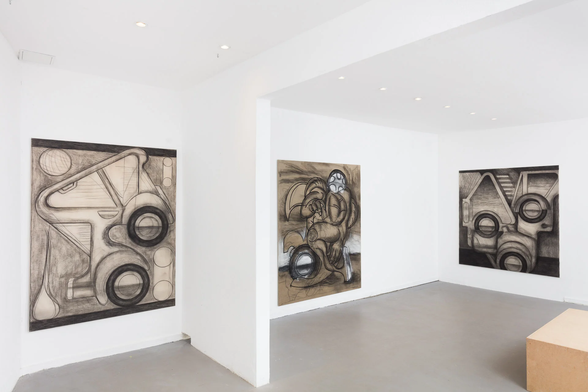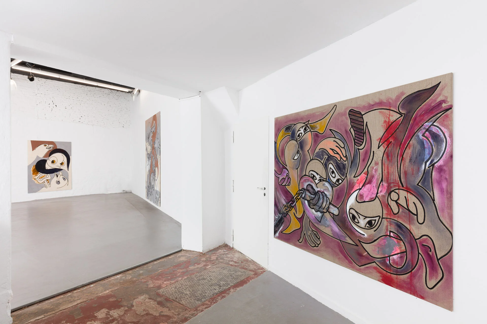 This expansion manifests in two distinct movements: a concentric shift that draws the gravitational center inward, and an outward, expansive force that seems to break through the boundaries of the canvas itself. These pictorial strategies not only demonstrate Andreas’ technical command but also call for a deeper dialogue about the innovative pictorial approaches currently emerging from Düsseldorf.