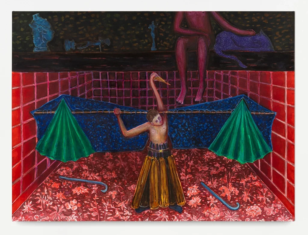 Something within the Water is a group exhibition co-curated by Andreas Steinbrecher, presenting new voices in contemporary German painting with works by Haein Choi, Lucas Kaiser, Hanna Kuster, Paul DD Smith, and Steinbrecher. The exhibition foregrounds newly developed conditions for pictorial composition: an emphatic return to drawing and an expanded use of images—everyday and iconographic—that opens painting onto renewed narrative possibilities.
